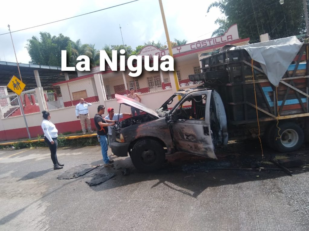 Chocamán. Una camioneta de redilas se incendió minutos antes del medio día, cuando circulaba sobre la carretera estatal San José Neria a Córdoba.