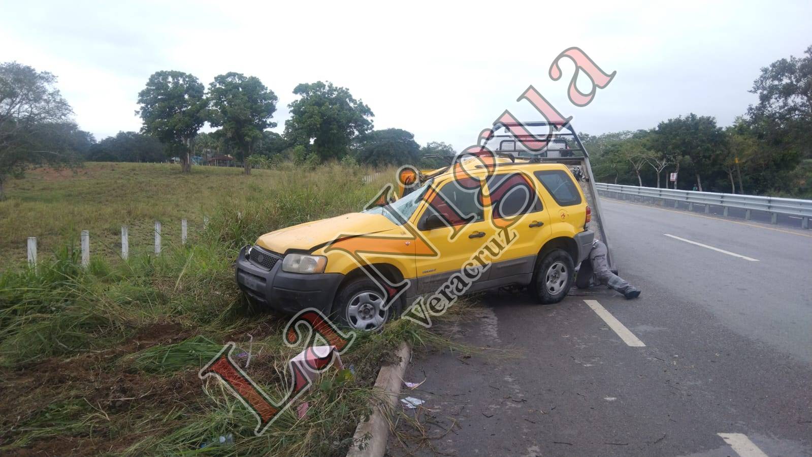 Fue la altura de la comunidad denominada “Llano de Bustos” donde el conductor de la camioneta Escape color amarilla perdió el control debido al exceso de velocidad y la carretera mojada.