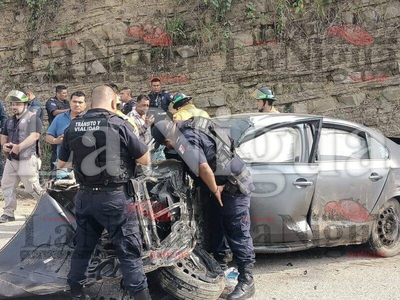 Automovilistas que circulaban en las inmediaciones de la bodega de Materiales Vite, en la colonia El Moreno, solicitaron la presencia de los cuerpos de rescate debido a que un vehículo Volkswagen Jetta, color gris y placas XBZ-036-C de Tamaulipas, estaba destrozado producto de un choque.