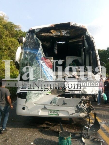 Estrellándose, el autobús DINA de color blanco con número económico 17570 de Servicios Turísticos Caribe, conducido por Manuel Essau Ortiz de 32 años de edad con domicilio en Villa Hermosa en Tabasco junto 35 pasajeros, provenientes de Coahuila con destino a Minatitlán.