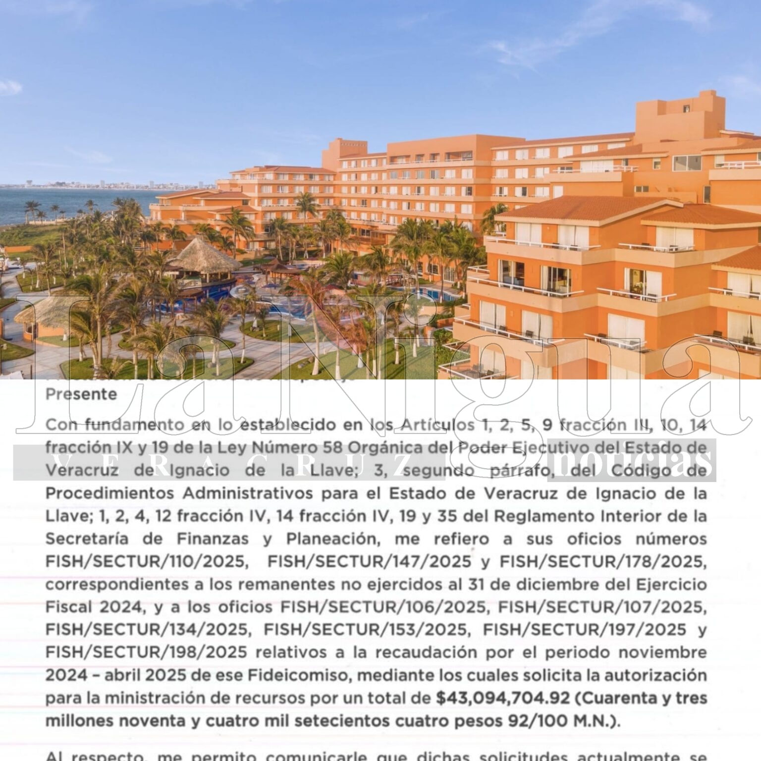Veracruz, Ver.- La Secretaría de Finanzas y Planeación (SEFIPLAN) del Estado de Veracruz confirmó a través de la subsecretaría de Egresos, el adeudo de más de 43 millones de pesos al Fideicomiso del 2 por ciento al hospedaje.