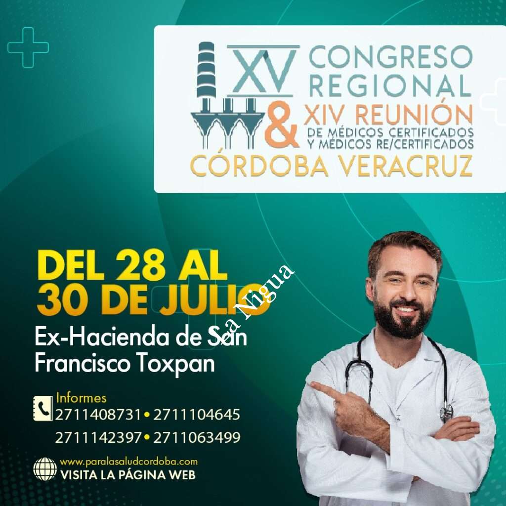 Córdoba, Ver., (5 de julio de 2022). – Del 28 al 30 de julio, Córdoba será sede del Congreso Regional y XIV Reunión de Médicos Certificados y Médicos Re/Certificados, que se llevará a cabo en las instalaciones de la Ex Hacienda San Francisco Toxpan, mismo que será avalado por la Universidad Veracruzana.