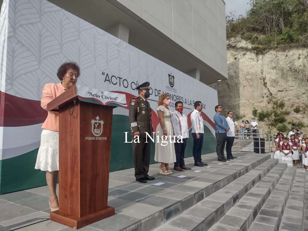 PAPANTLA, VER.- Al encabezar, el fortalecimiento de los Símbolos Patrios en las instalaciones de la Ciudad Judicial de está cabecera municipal por parte de la Magistrada Presidenta, Inés Isabel Romero Cruz.