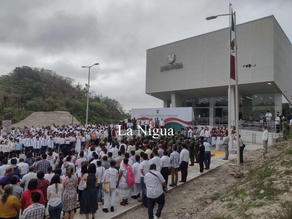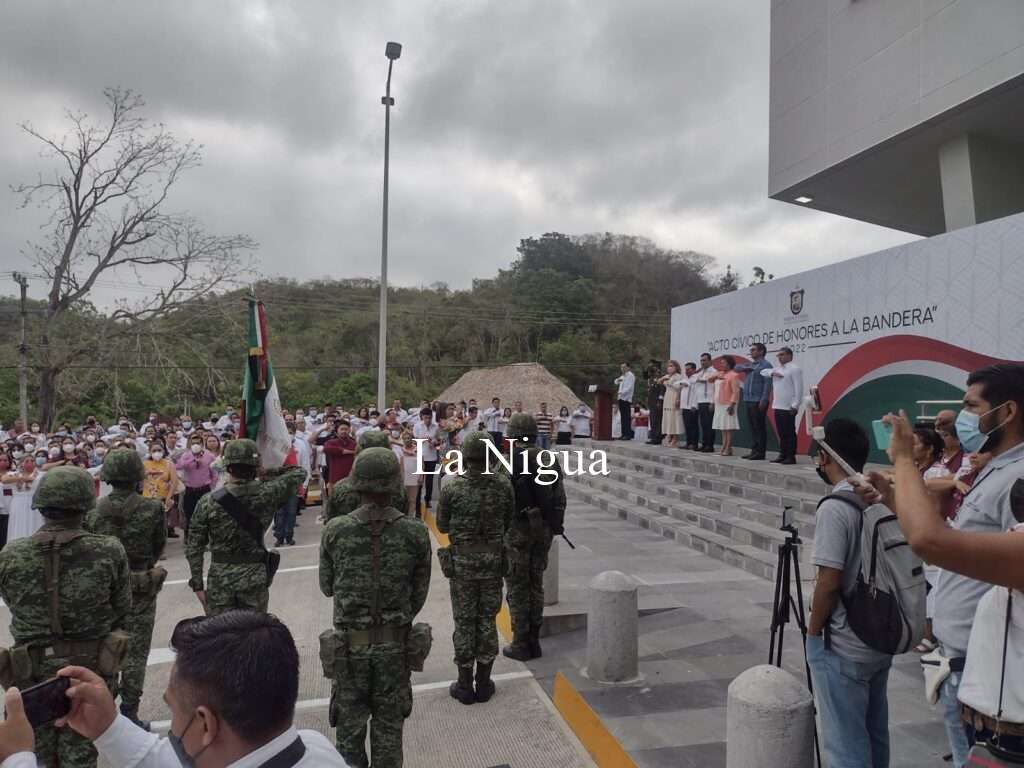 Quién estuvo acompañada por parte del alcalde Erick Domínguez Vázquez, del Coronel de Infantería DEM, Vicente Dimayuga Canales así como funcionarios judiciales y municipales, se llevó a efecto este importante acto cívico.