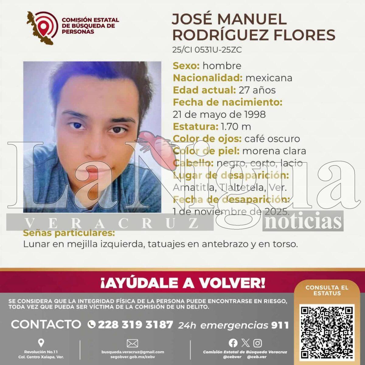 El hombre fue identificado como José Manuel Rodríguez, de 27 años, quien había dejado de tener contacto con su familia desde el sábado, fecha en que salió del municipio de Tlaltetela con destino a Totutla para llevar a un amigo. Tras ese trayecto no se supo más de él, por lo que sus familiares interpusieron un reporte de búsqueda.