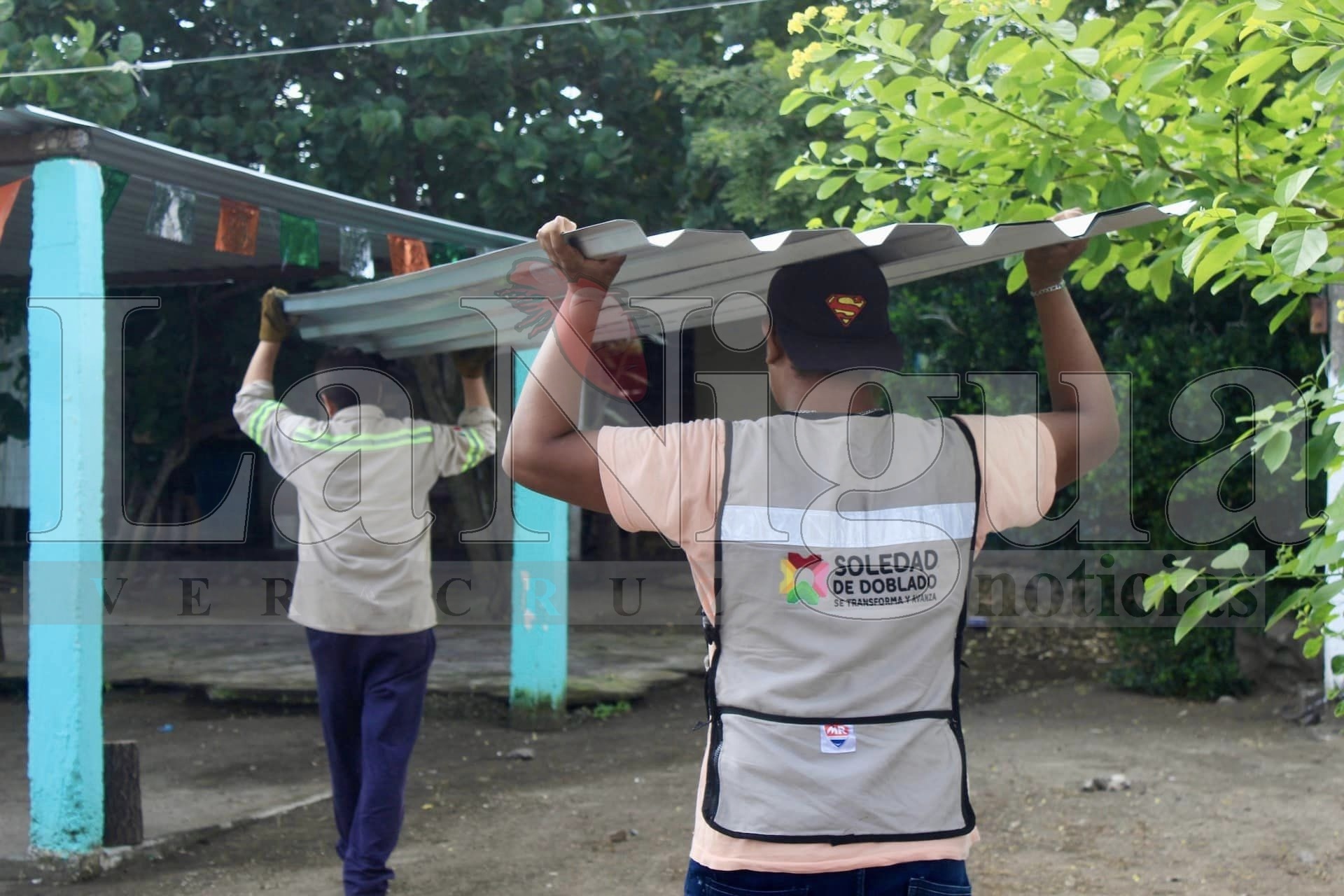 En el marco del compromiso por mejorar las condiciones educativas en Soledad de Doblado, la Alcaldesa Arantxa Zamitiz Sosa y el Presidente del DIF Municipal, Alan Aguirre, realizaron la entrega de láminas y materiales para la rehabilitación de un aula en el CAIC de Huihuixtla.