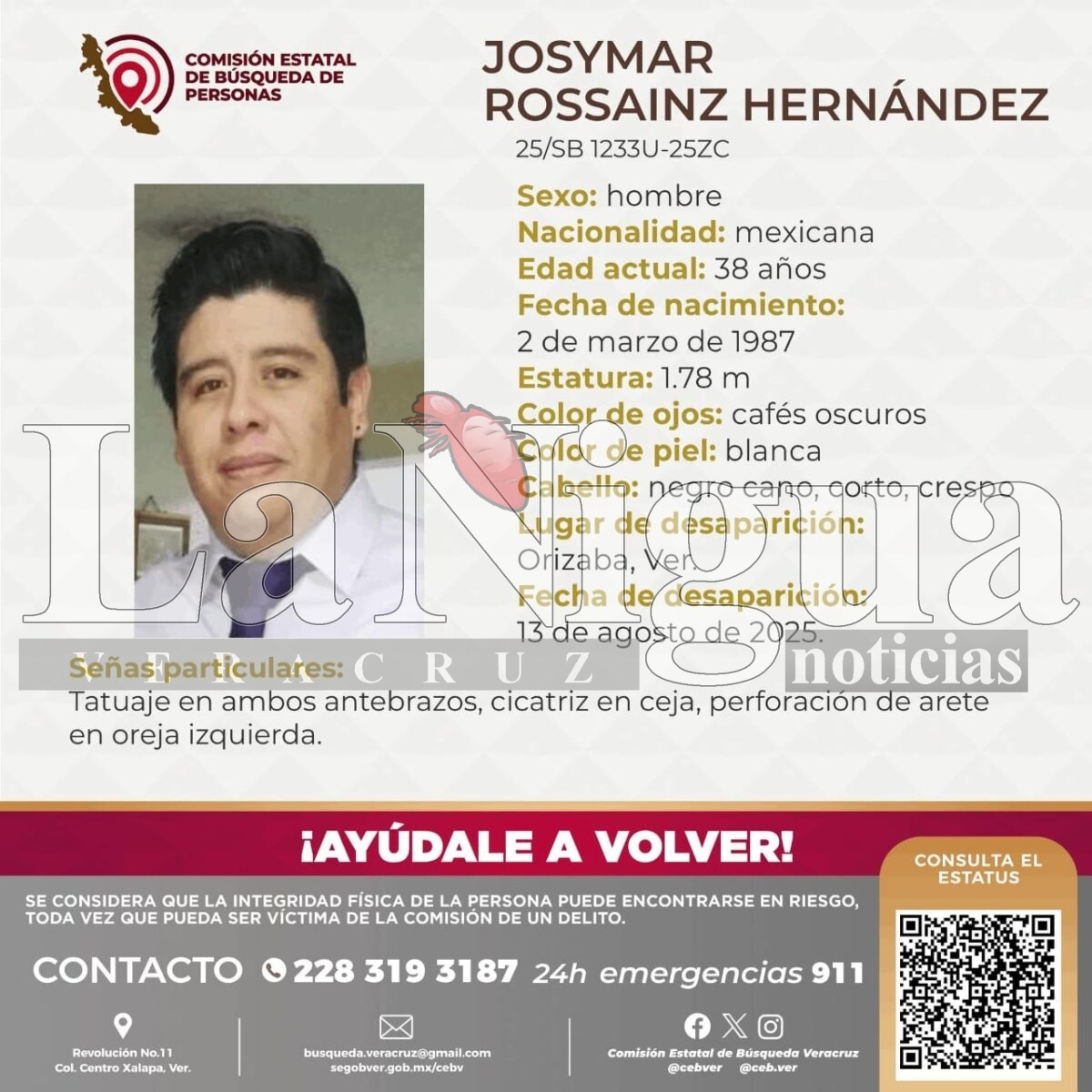 Orizaba, Ver.- Se solicita la colaboración de la ciudadanía para localizar al ciudadano Josymar Rossainz Hernández. Cualquier información que contribuya a su ubicación puede ser comunicada a los datos de contacto que aparecen en el margen de este boletín.