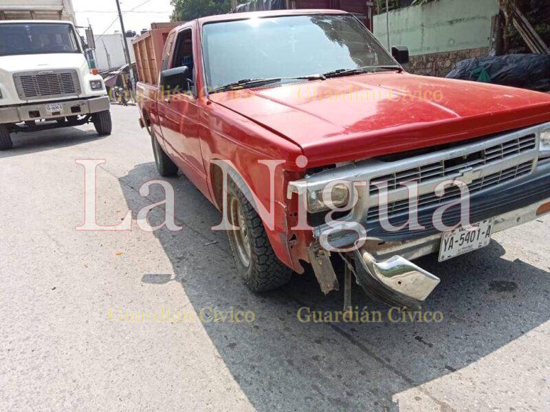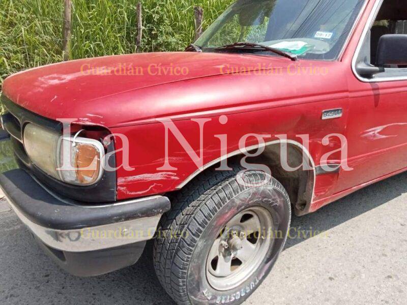 En el hecho de tránsito se vieron involucrados una camioneta Mazda, B2300, de color roja y una camioneta Chevrolet, de modelo atrasado, también de color roja.