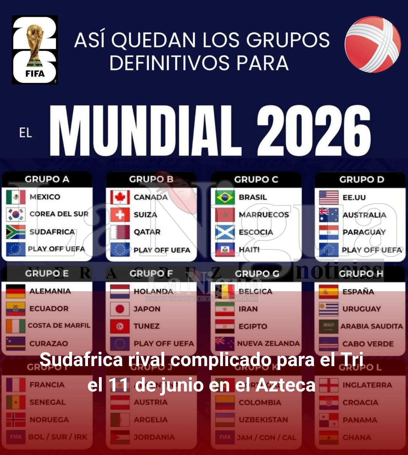 Otra vez estarán frente a frente México y Sudafrica en un Mundial, lo cual no es garantía de nada; el otro rival mexicano será Korea que jugará en Guada-lajara y el otro rival se conocerá en marzo, pero bien podría ser Dinamarca (sin farmacias).