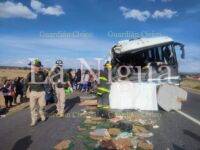 La coordinación estatal de Protección Civil del estado de Zacatecas, reportó que murió una persona y otras ocho personas resultaron lesionadas, cuando un autobús procedente del municipio de Coatzacoalcos se estrelló con un camión de carga.