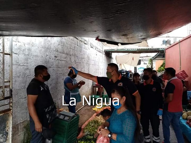 Huatusco,Ver.- La tarde de este domingo el personal del Ayuntamiento de Huatusco y elementos de PC, recorren el mercado y sus alrededores , así como la calle 4 y avenida 7 con el fin de supervisar el que las personas usen el cubrebocas, gel antibacterial y respetar la ” Sana Distancia “. Cómo medida de prevención por el COVIT-19 después de que se confirmó 11 casos en el municipio y una defunción más .