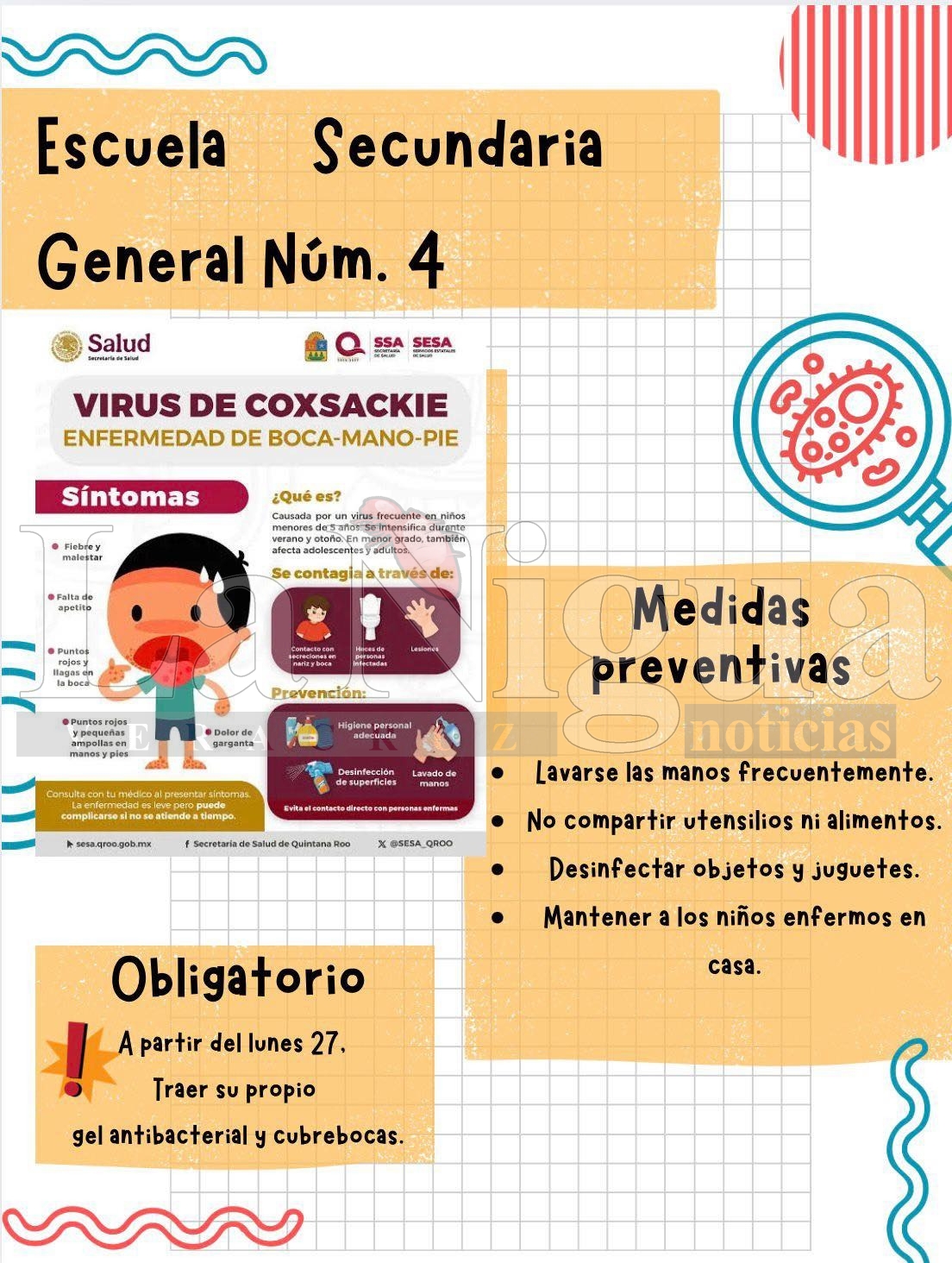 Con esta jornada sanitaria, la Secundaria General 4 se suma a las instituciones educativas del sur del estado que han implementado protocolos de prevención epidemiológica ante el repunte de enfermedades virales en la región y la primaria secundaria en reportar estos casos, ya que en su mayoría son primarias y kinders.