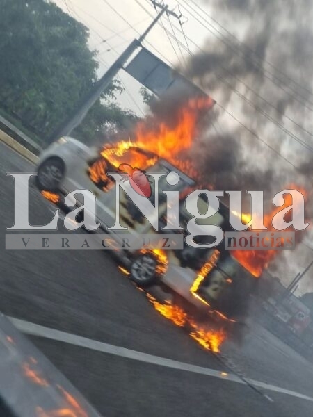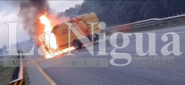 Una camioneta de paquetería DHL incendiada en el kilómetro 22, también en la carretera a Frontera.