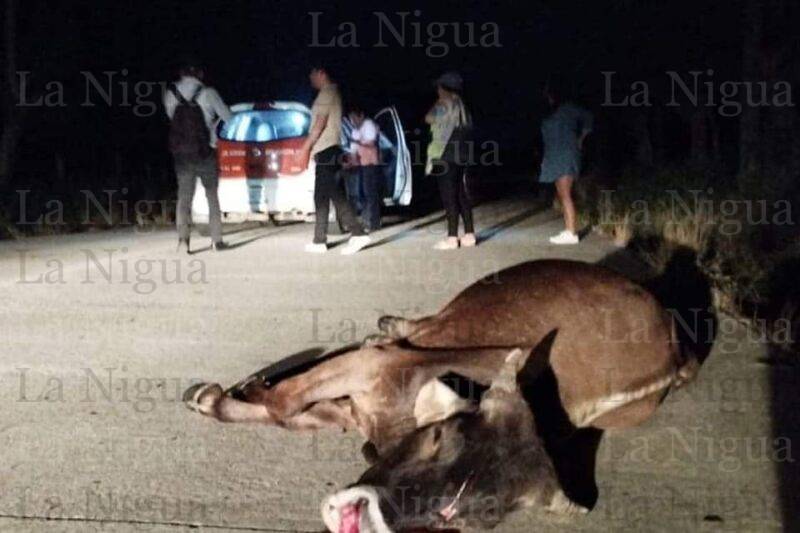 El hecho sucedió en la carretera Acayucan-Texistepec a la altura de la comunidad de Colombia donde de acuerdo a pasajeros que viajaban en la unidad de alquiler, el semoviente cruzó corriendo y el chófer trató de esquivarla pero no lo logró y se produjo el choque.