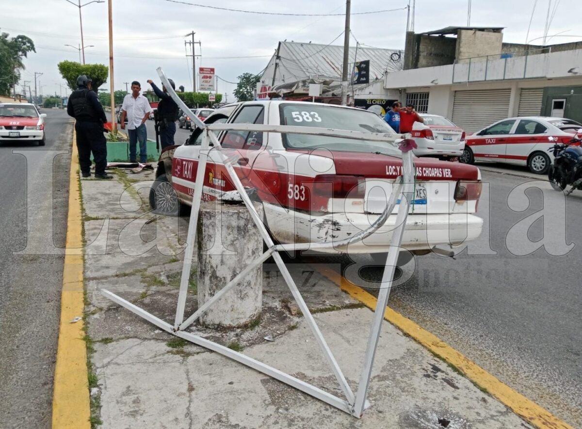 Las Choapas, Ver.- Un taxista terminó su noche de juerga y excesos luego de chocar en la unidad que utiliza para ganarse la vida, en el municipio de Las Choapas, pues se estampó sobre el camellón frente a las instalaciones del ADO, en el bulevar Antonio M. Quirasco y no pudo huir con la unidad.