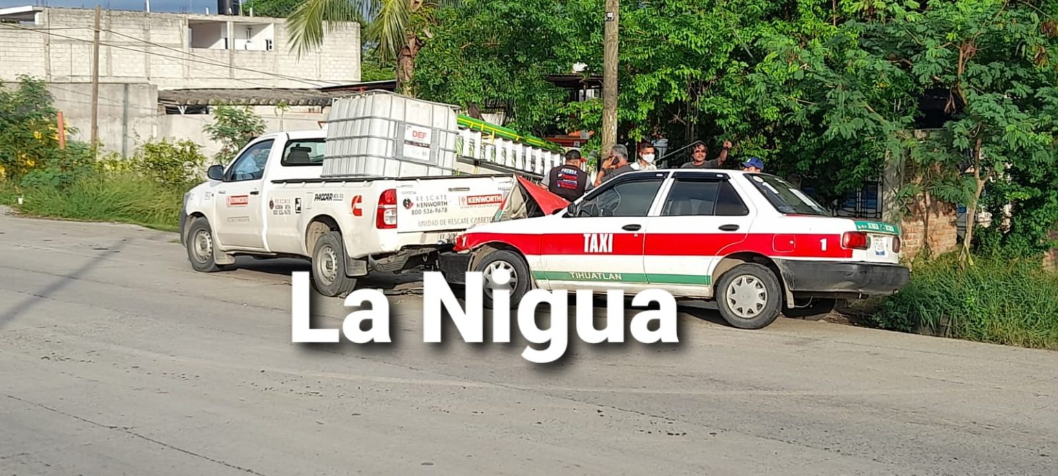 Dicha unidad de alquiler, era conducida por ALEJANDRO N de 46 años con domicilio en Totolapa en este municipio tihuateco, quién al tratar de huir; terminó por impactarse contra la batea de una camioneta FORD 150 Pick Up de color blanco con placas XV- 7989-A del Estado de Veracruz y que se encontraba estacionada.