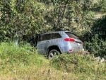 La camioneta de la marca Jeep, Grand Cherokee, de color gris, de reciente modelo, terminó con daños materiales menores tras el accidente.