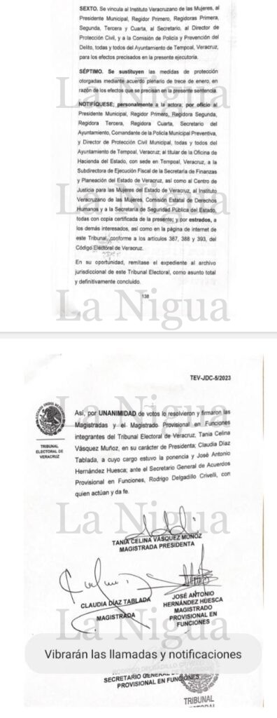 Xalapa, Ver.- El Tribunal Electoral de Veracruz (TEV) determinó la existencia política en razón de género contra la síndica única de Tempoal, Yesica Hernández Santos, por parte del comandante de la Policía Municipal Preventiva, José Antonio Fuentes Vicencio, quien hubiera cometido el delito presuntamente bajo órdenes del alcalde Néstor Rodolfo Rivera Pérez.