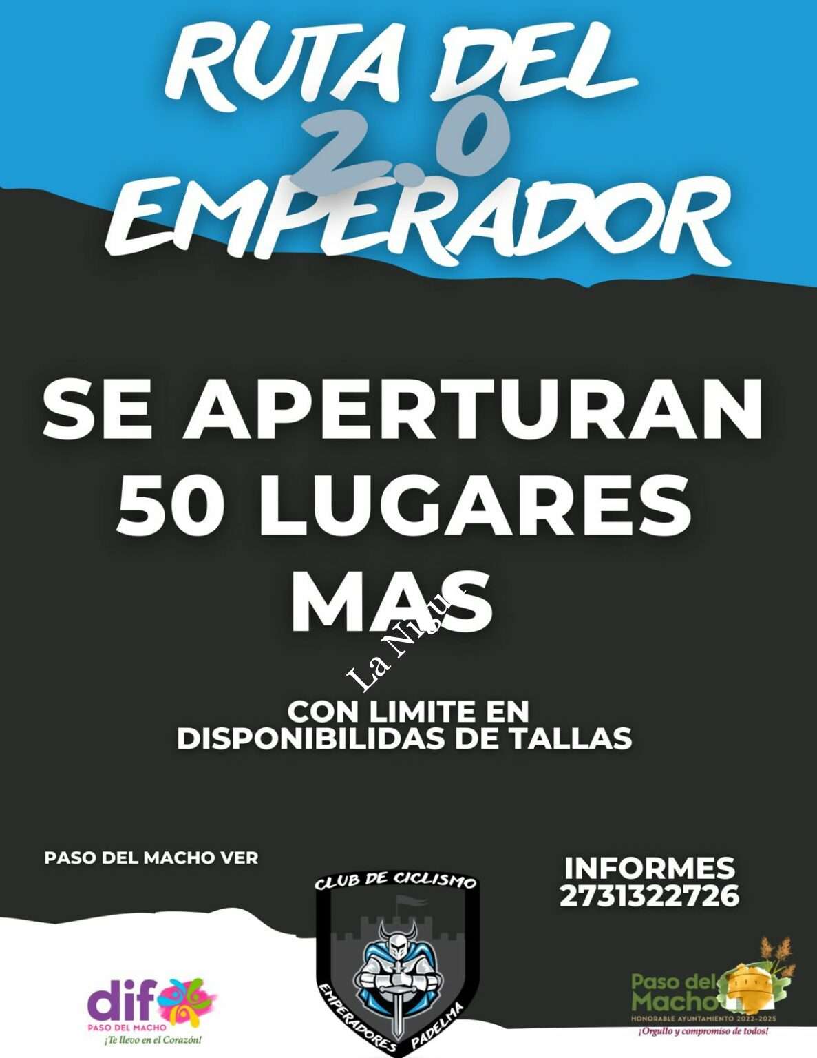 Paso del Macho, Ver.- Gran expectativa está causando entre ciclistas del estado la carrera ciclista “Ruta del Emperador 2.0” segunda edicion, la cual se va a realizar el próximo 9 de octubre, por tal razón los organizadores aperturaron 50 lugares más.