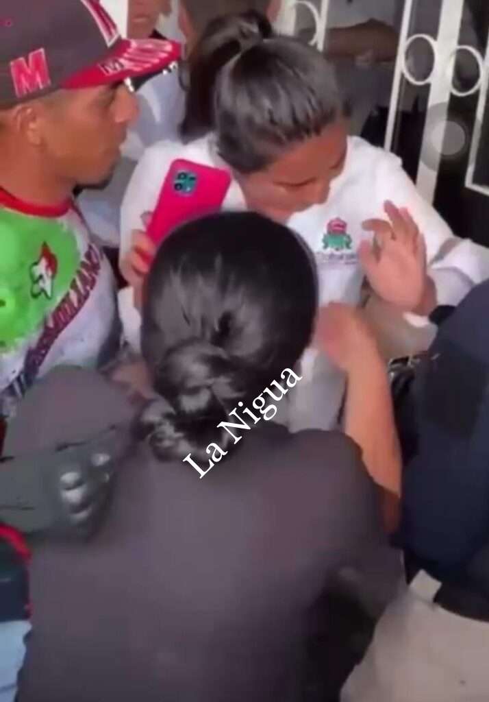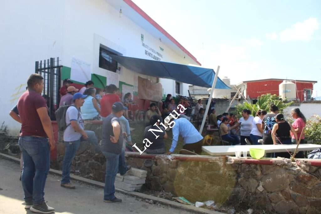 Tlatetela, Ver.- Ciudadanos de Tlatetela, encabezados por la ex candidata a la presidencia municipal, María de Jesús Caballero López del Partido de Morena y que es docente de un jardín de niños Benito Juárez, acudienron al palacio municipal para tomar las instalaciones, sacaron a empujones y jalones a empleados, piden al alcalde que construya el Banco Bienestar en el terreno donde se encuentra el jardín que igualmete sirve como biblioteca.