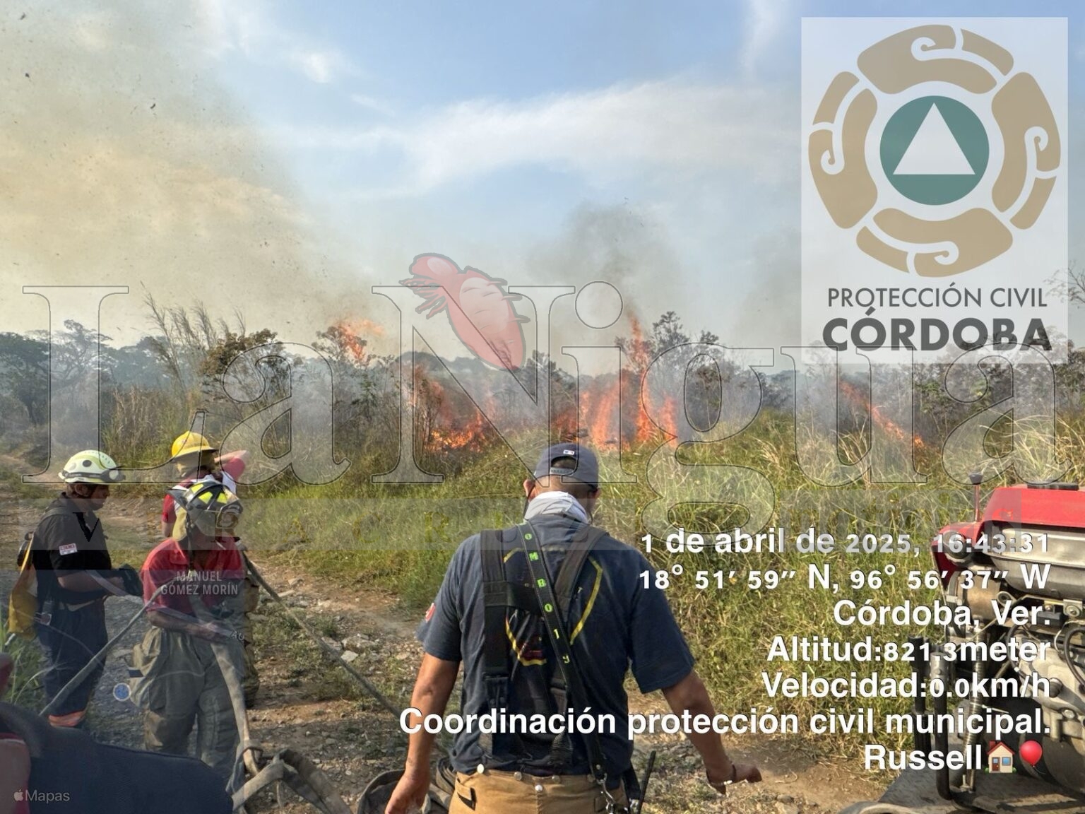 En un trabajo coordinado entre el H. Cuerpo de Bomberos Córdoba Veracruz, Hidrosistema, Policía Municipal y Cruz Roja se avanza para controlar este siniestro.