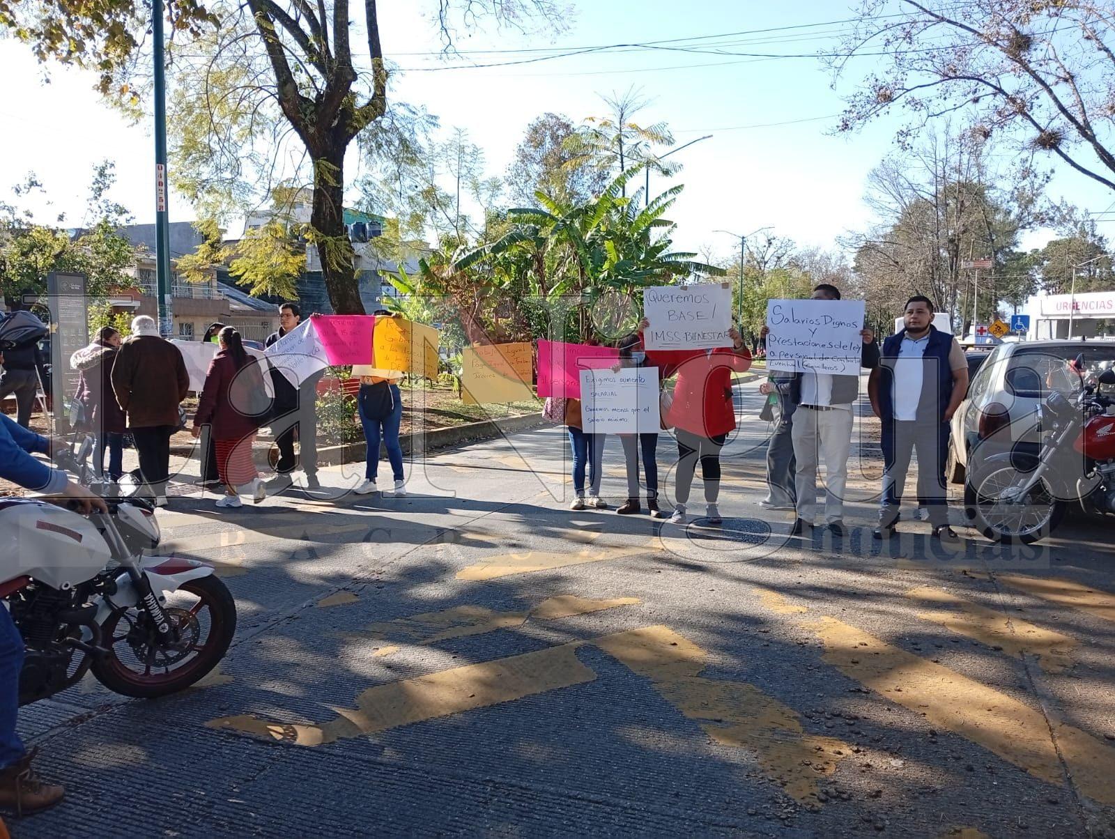Xalapa, Ver.– Trabajadores de contrato del Hospital Centro de Alta Especialidad “Dr. Rafael Lucio” bloquearon la tarde de este martes los carriles de la avenida Adolfo Ruiz Cortines, a la altura del nosocomio, en protesta por la falta de pago de la primera quincena del año 2026.