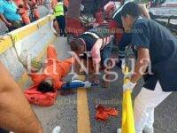 Los trabajadores con sus overoles color naranja, quedaron tirados sobre el asfalto y fueron automóvilistas que le brindaron los primeros auxilios, minutos después arribaron paramédicos del grupo Geicer, policía municipal y personal de vialidad.