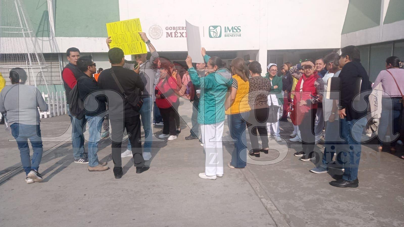 Orizaba, Ver.– Personal médico, de enfermería y administrativo adscrito a la Jurisdicción Sanitaria No. 7, al Centro de Salud y al Hospital del IMSS Bienestar de Río Blanco se manifestó la mañana de este viernes para exigir modificaciones al bono de fin de año y a las tarjetas de vales de despensa que reciben como compensación laboral, al considerar que las restricciones actuales limitan severamente su utilidad.