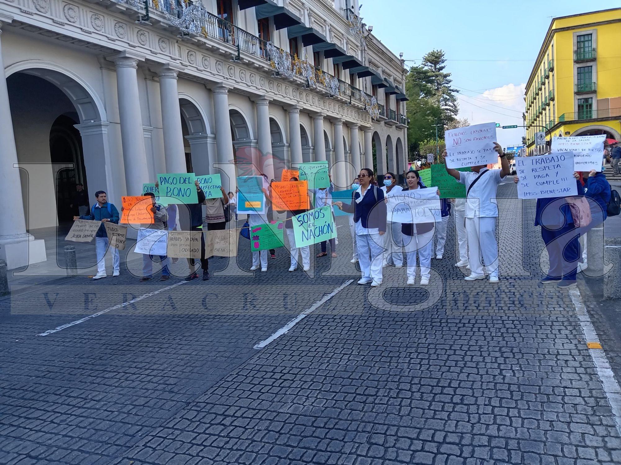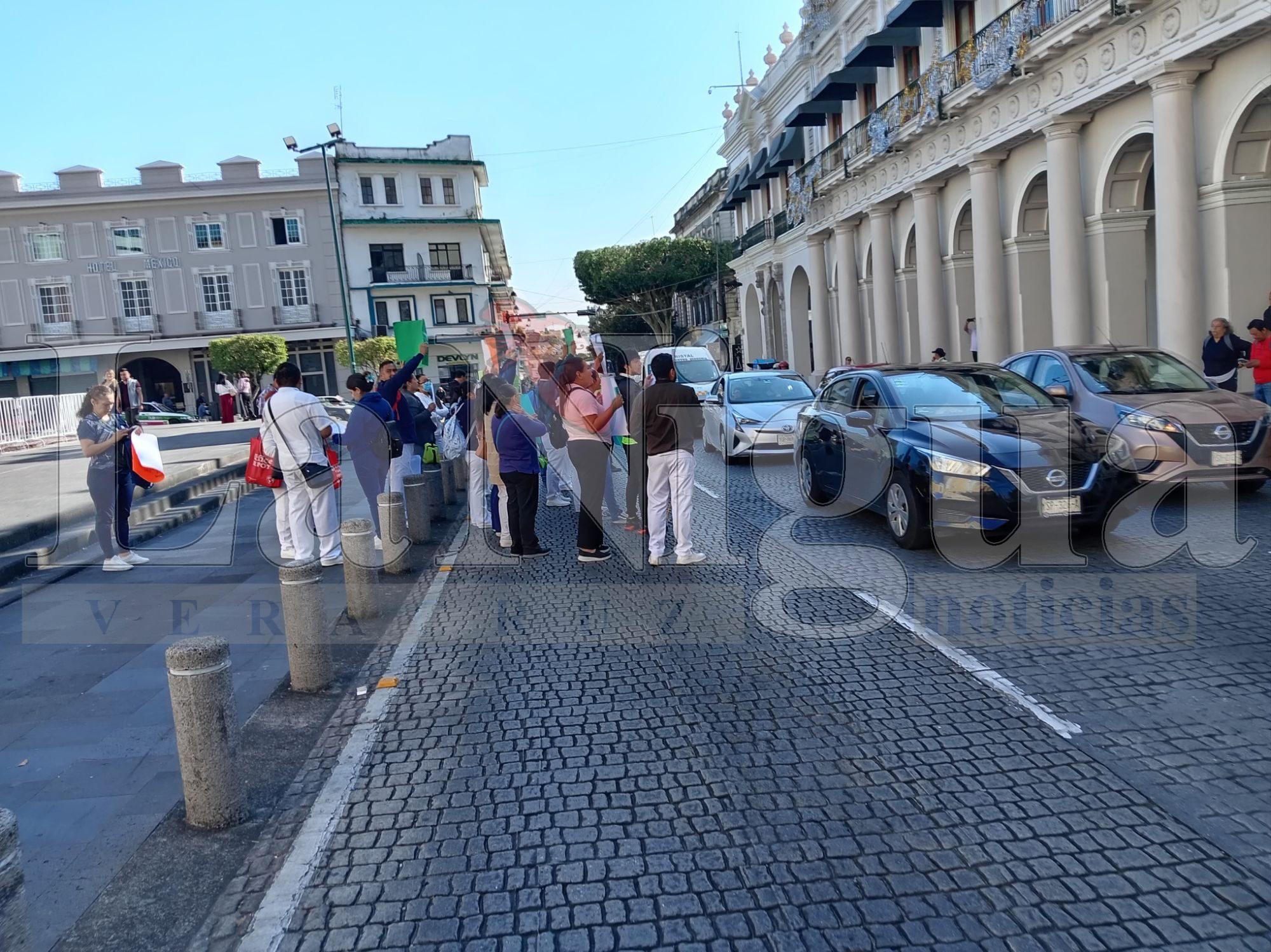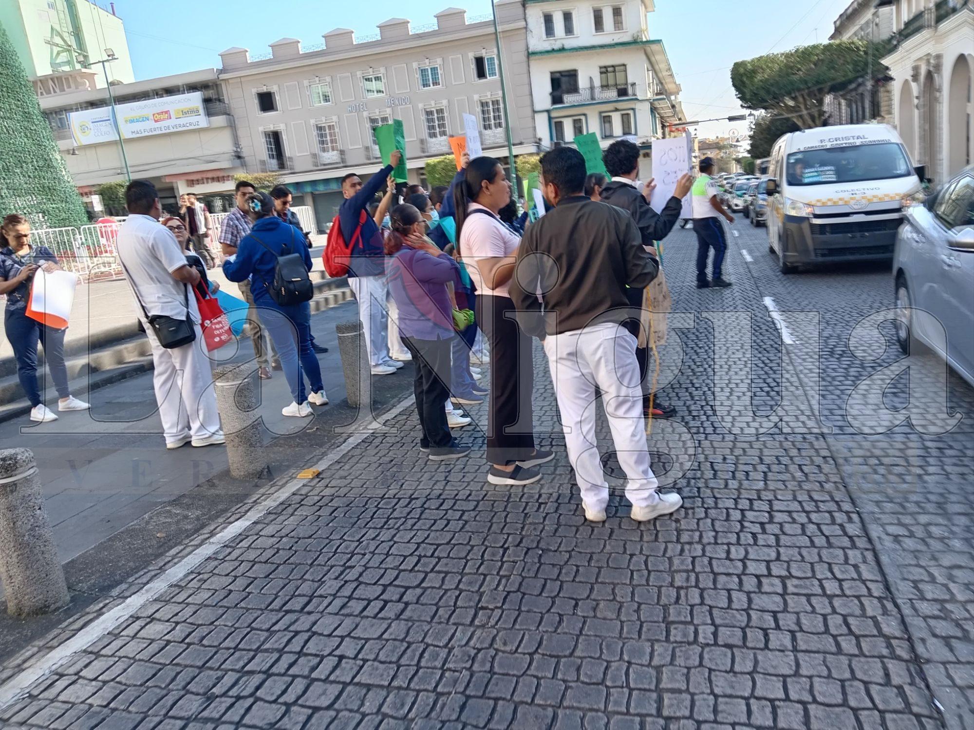 La protesta provocó caos vial en el primer cuadro de Xalapa; personal de salud advierte que no se retirará hasta recibir su prestación