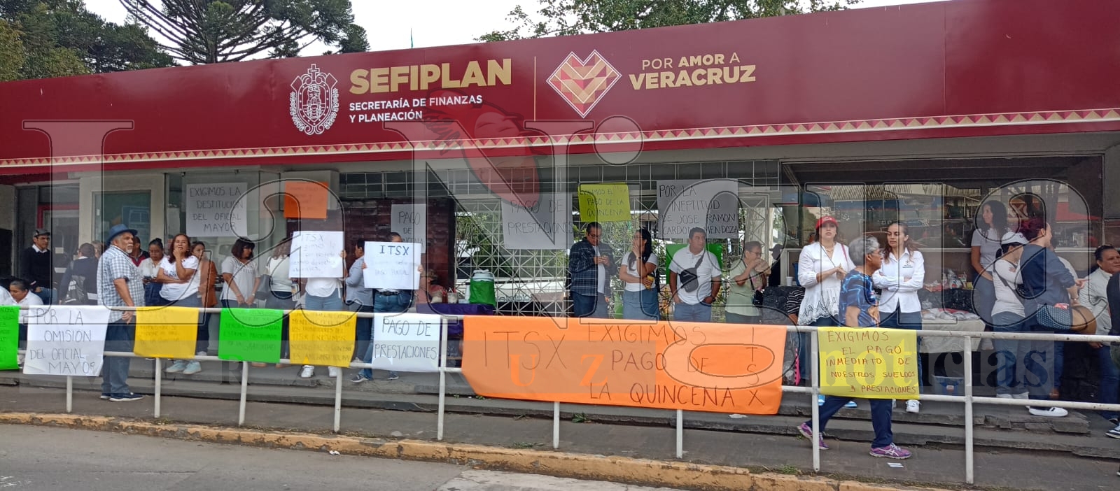 Xalapa, Ver.- Integrantes de dos sindicatos del Instituto Tecnológico Superior de Xalapa se manifestaron este martes en las oficinas de la Secretaría de Finanzas y Planeación (SEFIPLAN) del Gobierno de Veracruz, exigiendo el pago de su salario correspondiente a la segunda quincena de marzo, así como prestaciones adeudadas desde hace dos años.