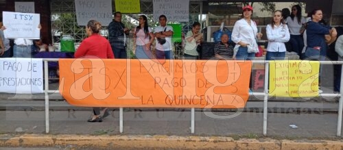 Durante la protesta, los inconformes portaron cartulinas con diversas consignas exigiendo el pago inmediato de sus salarios y prestaciones.