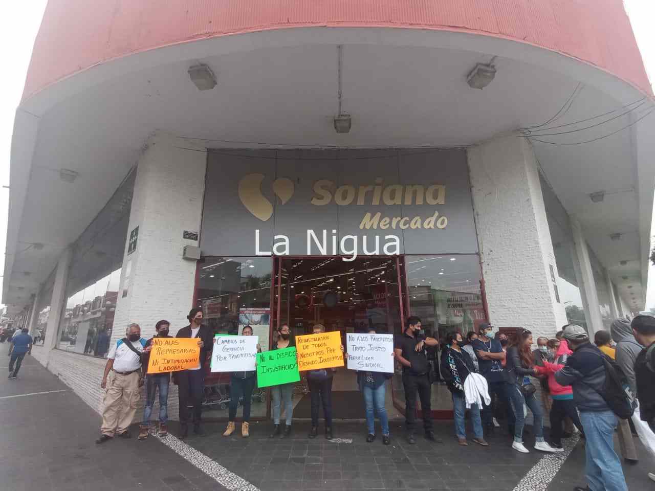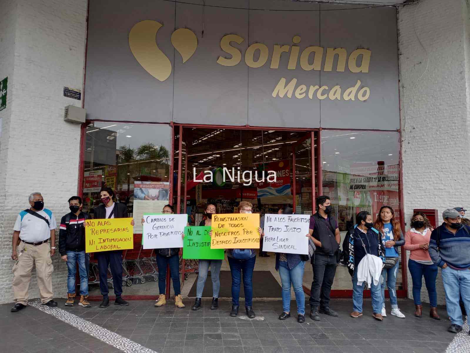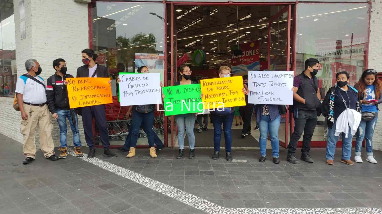Este miércoles el gerente y la encargada de Recursos Humanos de Soriana no los dejaron accesar a su fuente de trabajo, sin importarles que exigían un diálogo, para saber en qué habían faltado a su contrato.