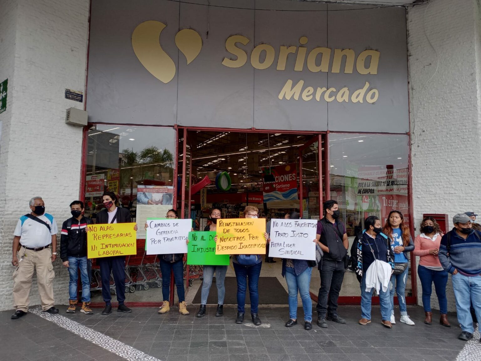 Poco antes de iniciar la manifestación, 21 trabajadores sindicalizados de Soriana fueron informados que serían dados de baja de la empresa, por apoyar a su compañero.
