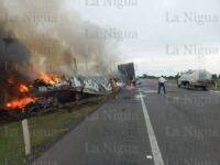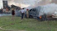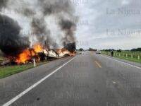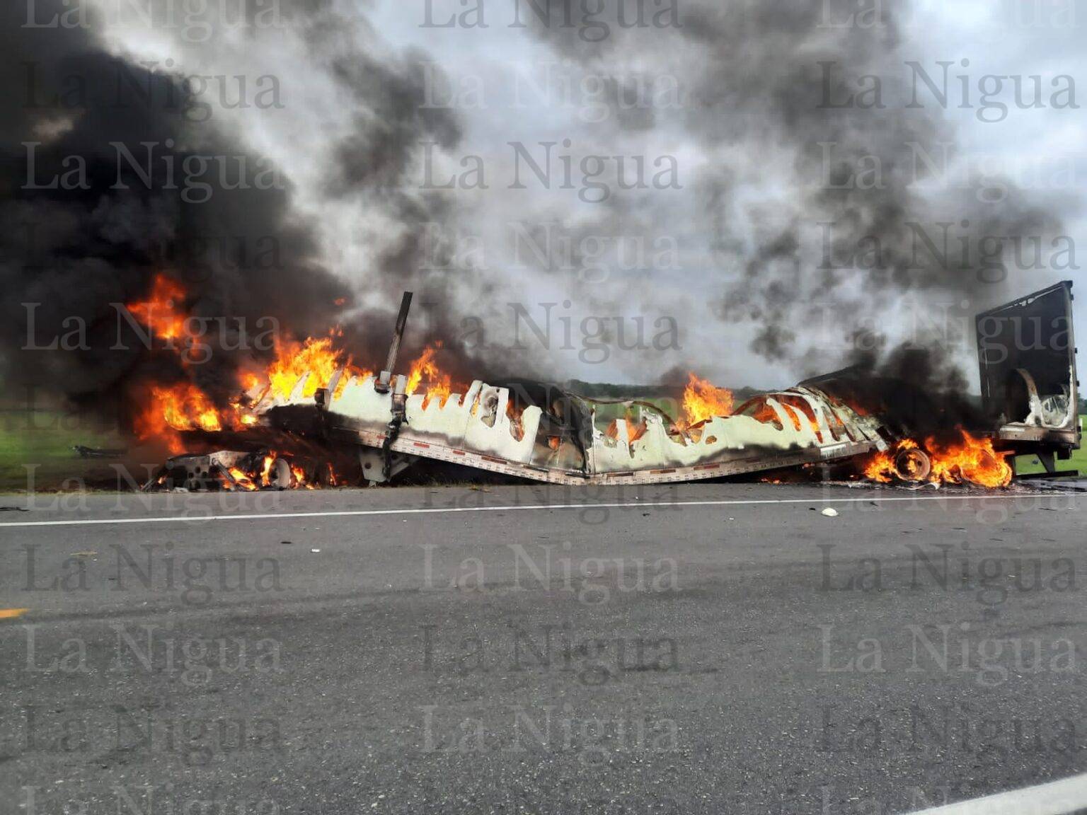 Cd Victoria.-Terrible tragedia, 14 personas perdieron la vida en fuerte choque que terminó en incendio entre un tráiler y una camioneta tipo van.