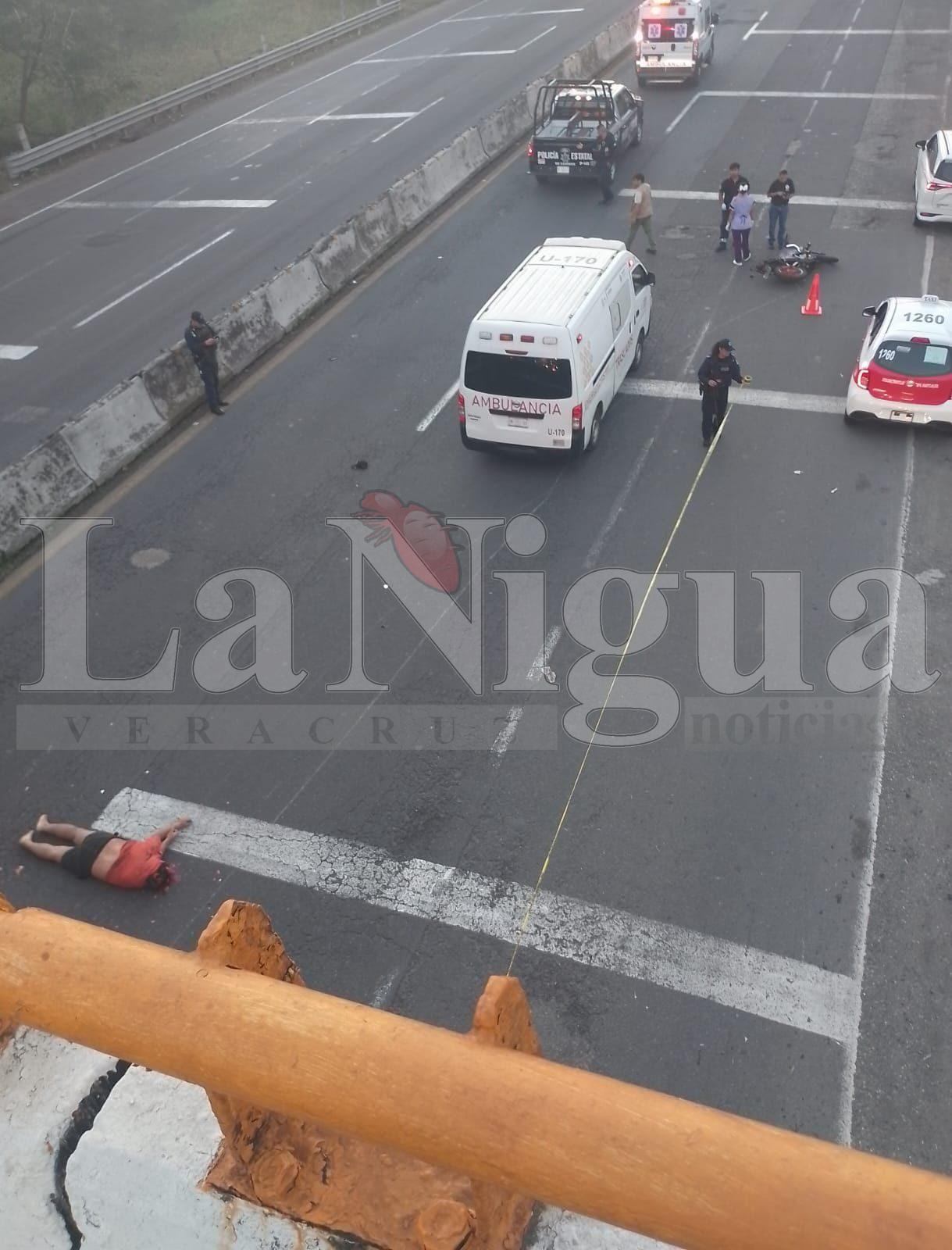 Minatitlán,ver. Trágica muerte encontró un motociclista la tarde noche de hoy domingo ,cuando circulaba abordo de su motocicleta en color negra sobre la autopista Cosoleacaque nuevo teapa a la altura del puente conocido como la ICA., por el momento se desconoce como fue que perdió la vida pero no se descarta que algún vehículo lo haya impactado y que se dio a la fuga.