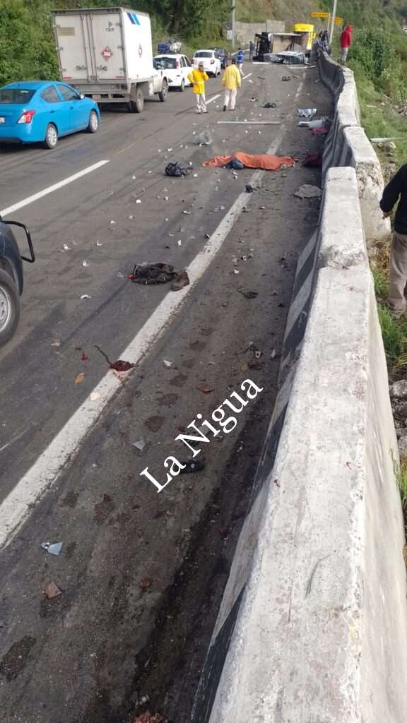 Desgraciadamente del impacto salieron disparados dos personas del sexo masculino y al caer a la carpeta asfáltica perdiendo la vida instantáneamente, se habla de más personas fallecidas, pero hasta el momento ninguna autoridad lo a confirmado.