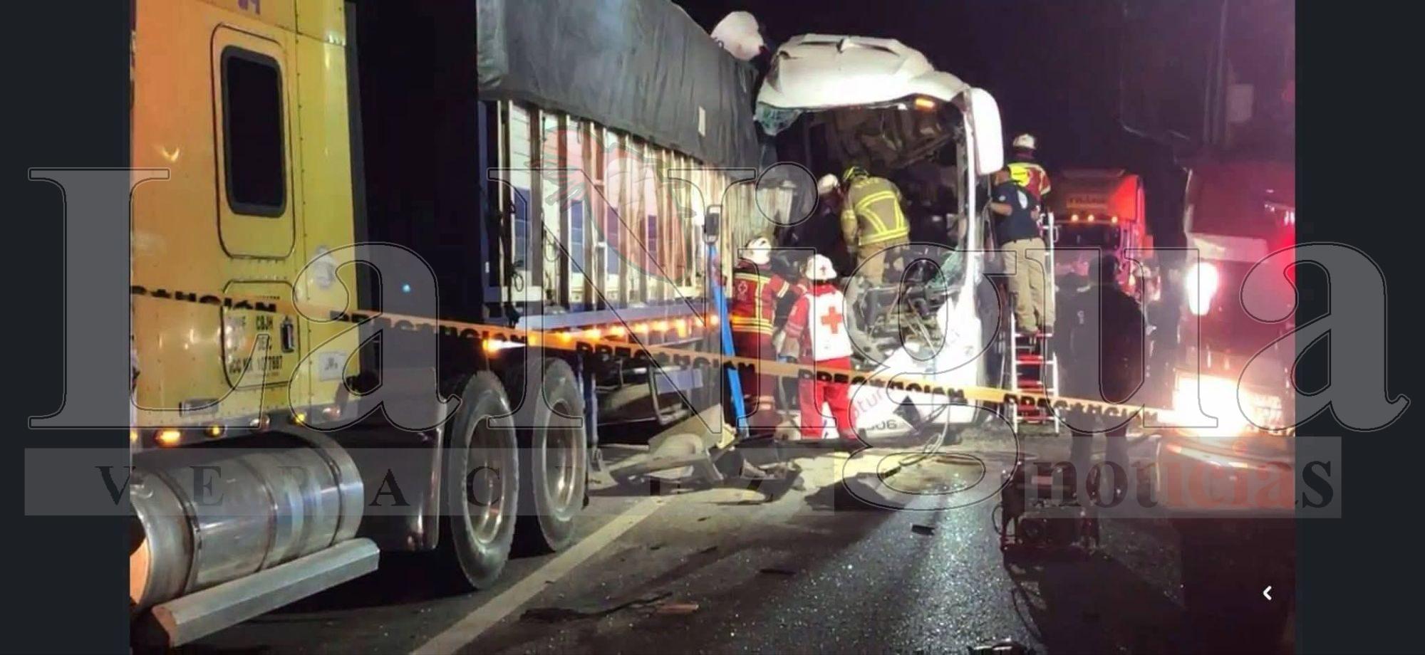 De acuerdo con los primeros reportes, la unidad de pasajeros se impactó violentamente contra la parte trasera de un tráiler marca Kenworth, el cual presuntamente se encontraba estacionado sobre la vía, lo que habría provocado el fuerte choque.