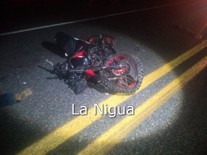 A tres metros de los “cuerpos”, había una motocicleta destrozada en la cual viajaban y fueron embestidos por un tráiler.