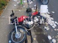 El repartidor terminó en el hospital luego que derrapara al tratar de rebasar por la derecha a la pesada unidad en el bulevar central.