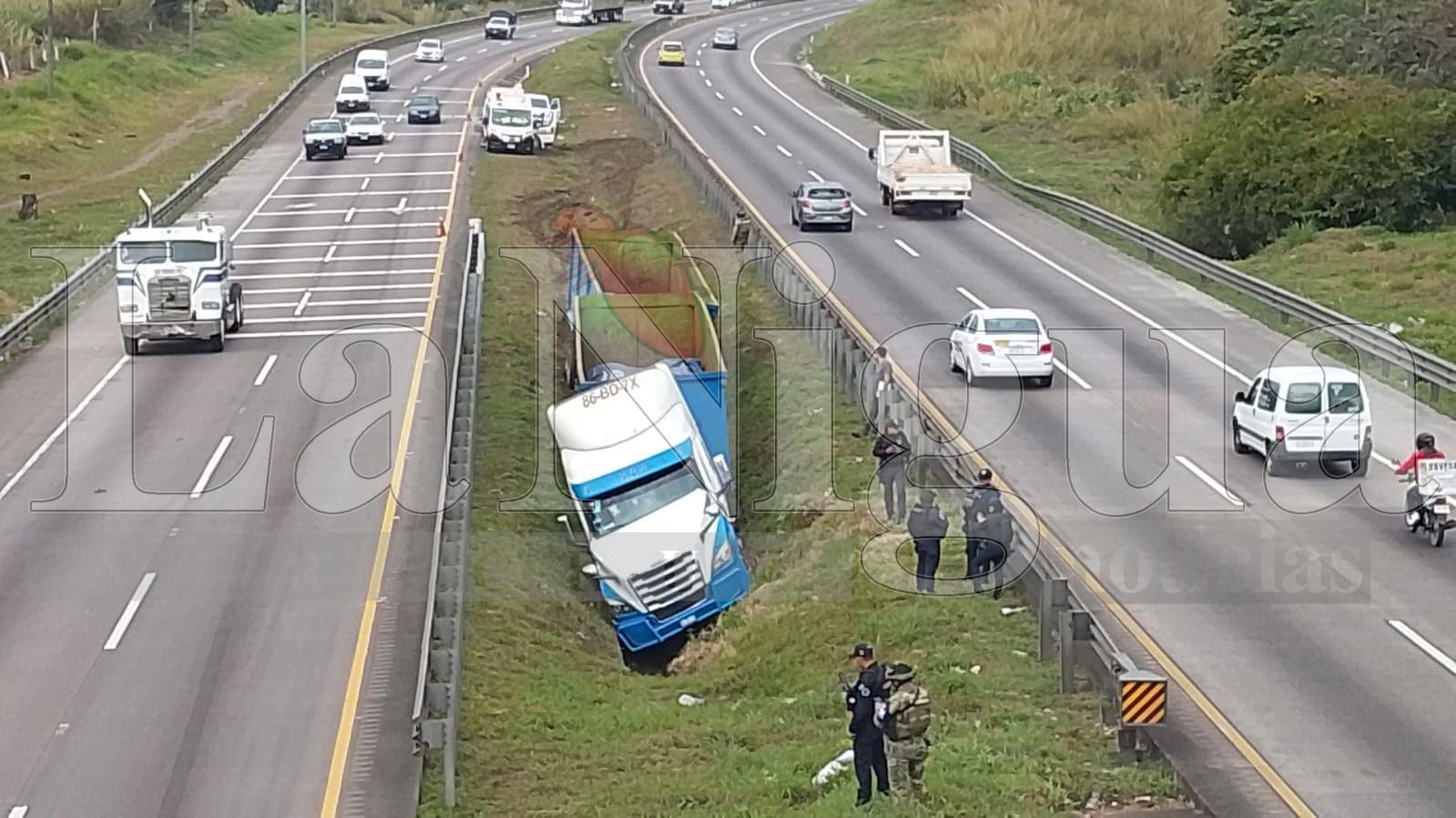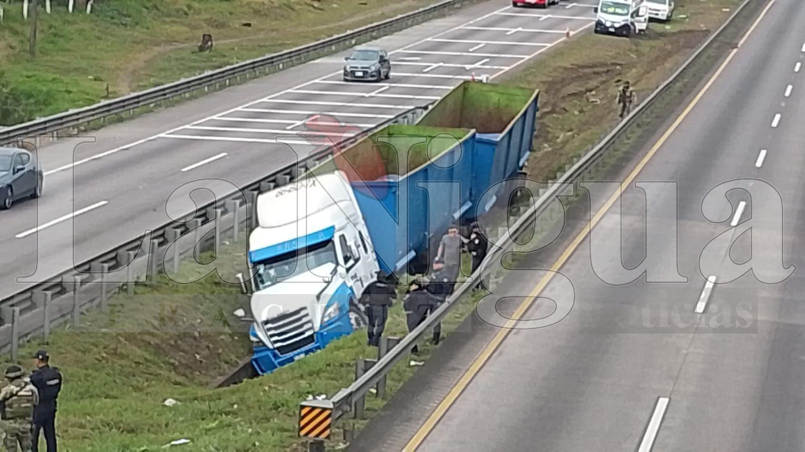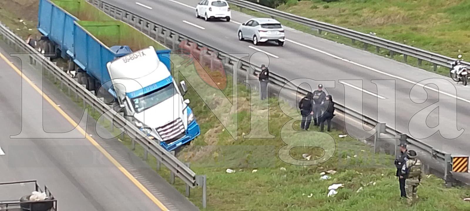 De acuerdo con los primeros reportes, la pesada unidad circulaba en descenso cuando, al llegar a una curva, presuntamente a causa de una falla mecánica, el conductor perdió el control, salió del camino e invadió el camellón central, para finalmente terminar en una zanja.
