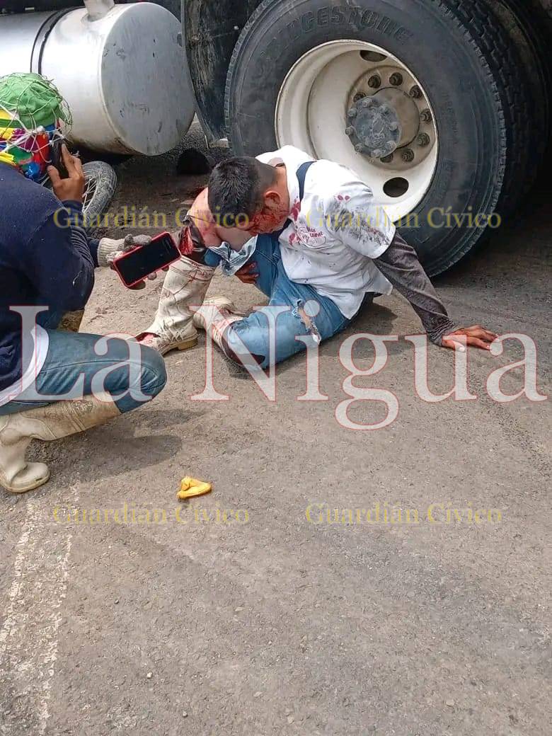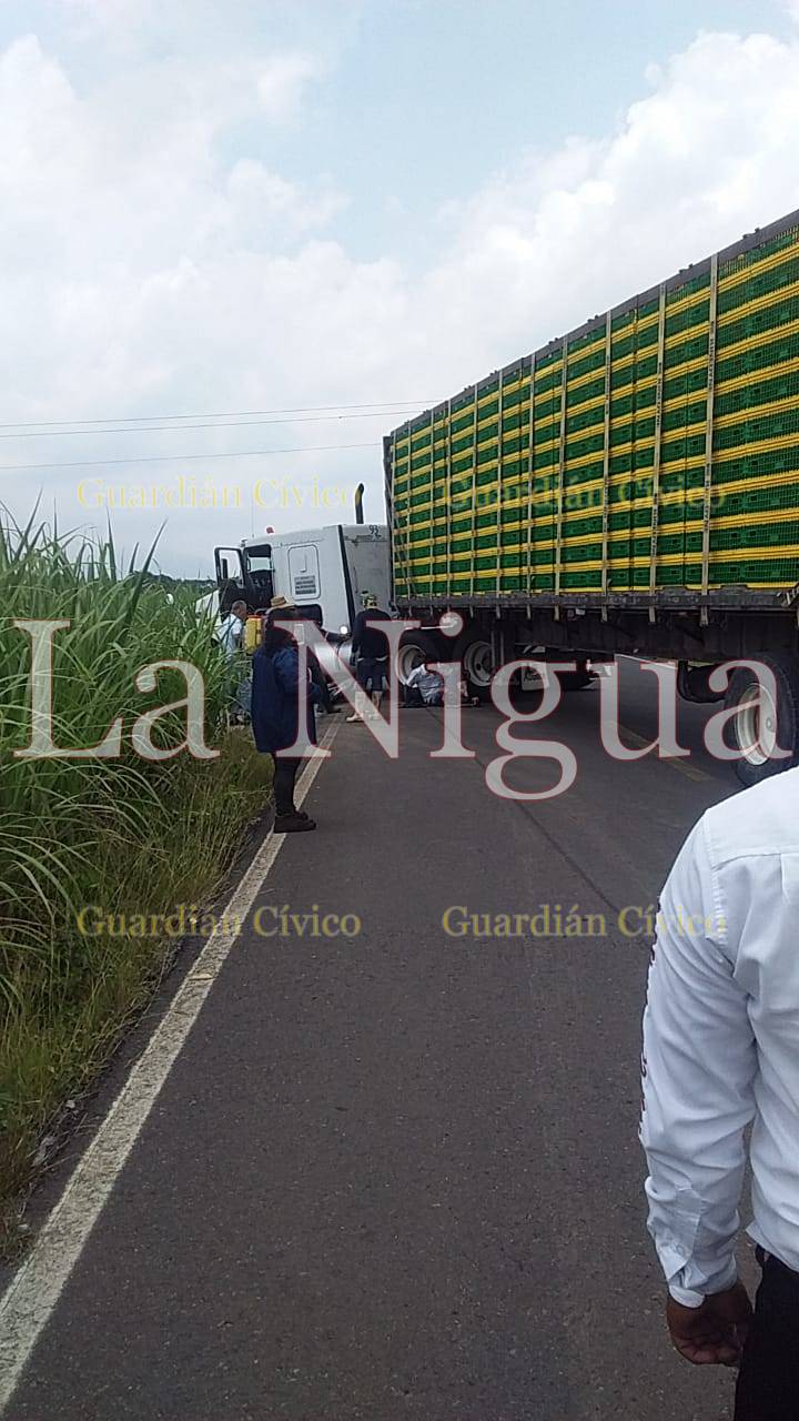 Mata Naranjos, Paso del Macho, Ver.- Un motociclista repartidor de la empresa MásCarne, fue arrollado por un camión de una empresa avícola que intentó cortar circulación de forma indebida al meterse a la izquierda sin ver que una motocicleta le iba a rebasar.