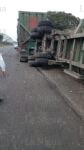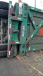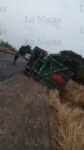 Tras el impacto el responsable se siguió su camino, en tanto el vehículo que transportaba caña, una de sus tolvas volcó, cayendó sobre un motociclista, aplastando la unidad y uno de los pies del motoquero.