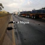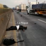 Tras el impacto el trailero se dio a la fuga con todo y unidad, en tanto el motociclista terminó en la cinta asfáltica, ya si vida.