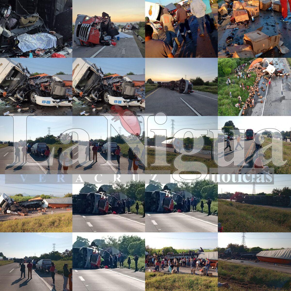 El accidente ocurrió en el kilómetro 5, donde un tráiler con doble remolque cargado con cerveza presuntamente se impactó por alcance contra un tráiler tipo tolva. El fuerte golpe provocó la volcadura de ambas unidades de carga y bloqueó por completo los carriles con dirección al puerto de Veracruz.
