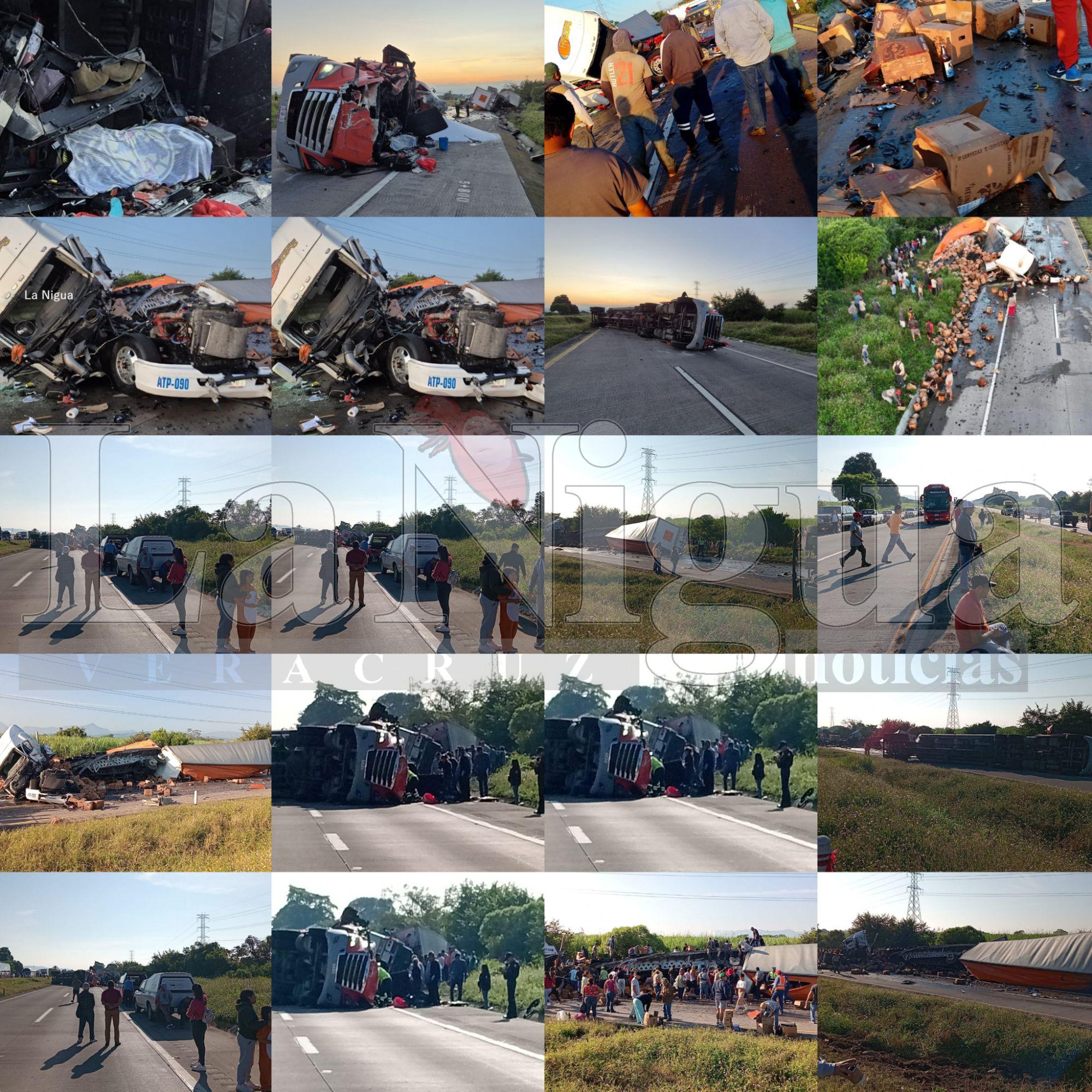 El accidente ocurrió en el kilómetro 5, donde un tráiler con doble remolque cargado con cerveza presuntamente se impactó por alcance contra un tráiler tipo tolva. El fuerte golpe provocó la volcadura de ambas unidades de carga y bloqueó por completo los carriles con dirección al puerto de Veracruz.