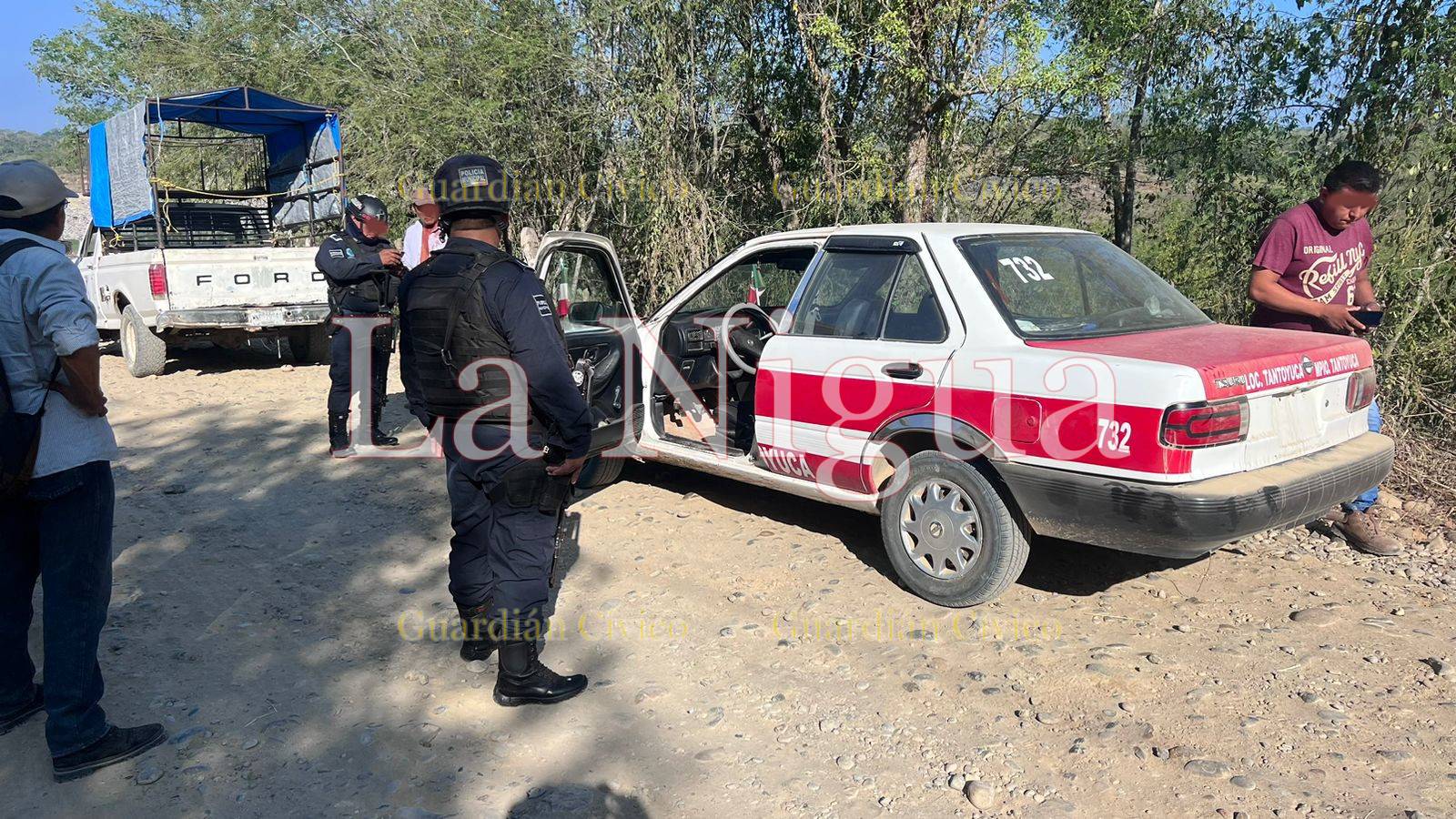 Al sitio arribaron elementos de la Policía Municipal quienes inmediatamente aseguraron al conductor de un vehículo de alquiler Nissan, Tsuru, marcado con el número económico 732.