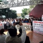 Los manifestantes marcharon por todos los carriles de la avenida Lázaro Cárdenas y por lo tanto, se hizo un tráfico tremendo y largas filas de autos y camiones de transporte público.