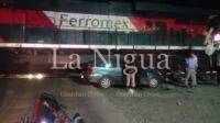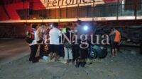 El conductor de un automóvil Chevrolet Corsa, se desplazaba a toda velocidad y por este motivo trató de ganarle el paso al ferrocarril, lamentablemente no lo logró y fue embestido por la mole de acero, a pesar de que el operador de la máquina logró detener su marcha.