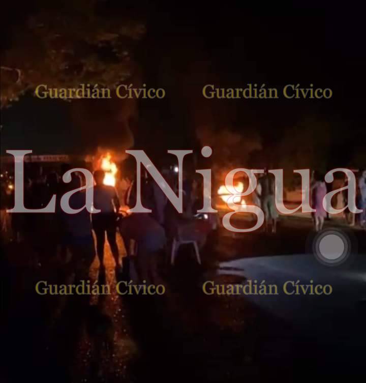 Durante la madrugada que inició el bloqueo, los vecinos quemaron llantas presuntamente para tener alumbrado el lugar, sin embargo la carretera se encuentra totalmente bloqueada para ello recurrieron a ramas de árboles, pedazos de block piedras sacos con tierra y todo lo necesario para que no pase ningún vehículo para hacer presión a las autoridades.