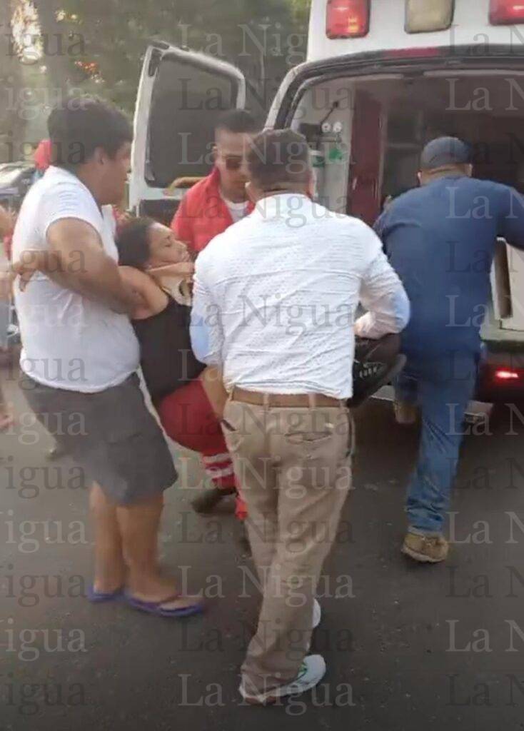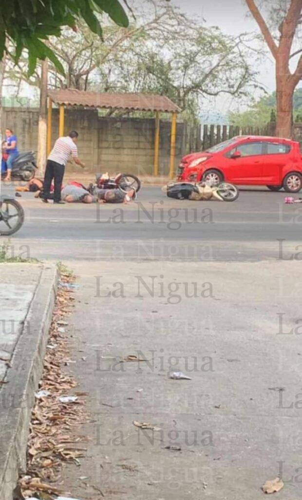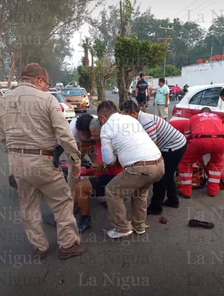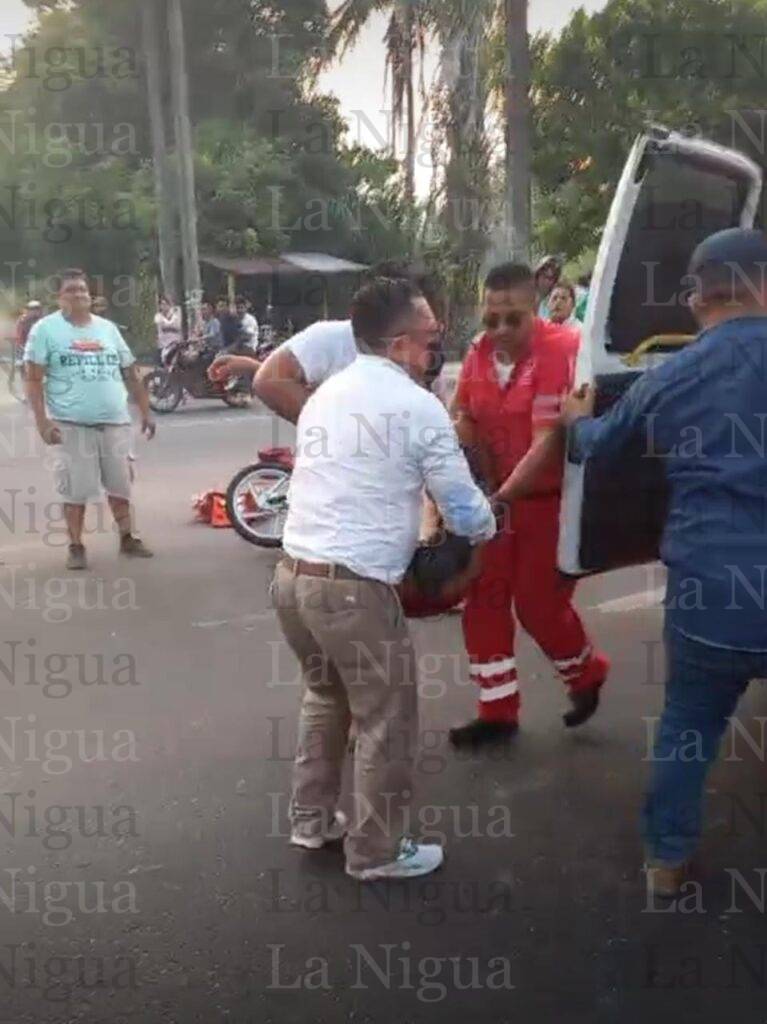 Paramédicos de Cruz Roja, taxistas y voluntarios, le prestaron los primeros auxilios a tres personas que quedaron lesionadas luego que sufrieran un accidente cuando circulaban en motocicletas en el boulevard Antonio M Quirazco frente a las instalaciones del Cendi la tarde de este martes 9 de mayo.